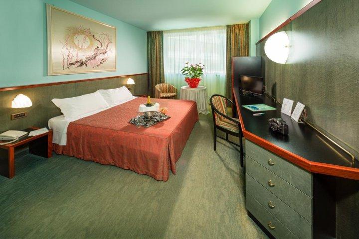 Camere — La struttura dispone di 72 camere di diverse tipologie (Standard, Superior e Suites), ideali per coppie, famiglie e piccoli gruppi. In camera puoi trovare diversi optional utili per un soggiorno pratico e rilassante, come Wi-Fi, frigobar, cassaforte, aria condizionata e dotazioni pensate per il comfort quotidiano (asciugacapelli, scaldasalviette, ecc.). Completano i servizi parcheggio ampio, garage e soluzioni comode anche per chi viaggia in comitiva.